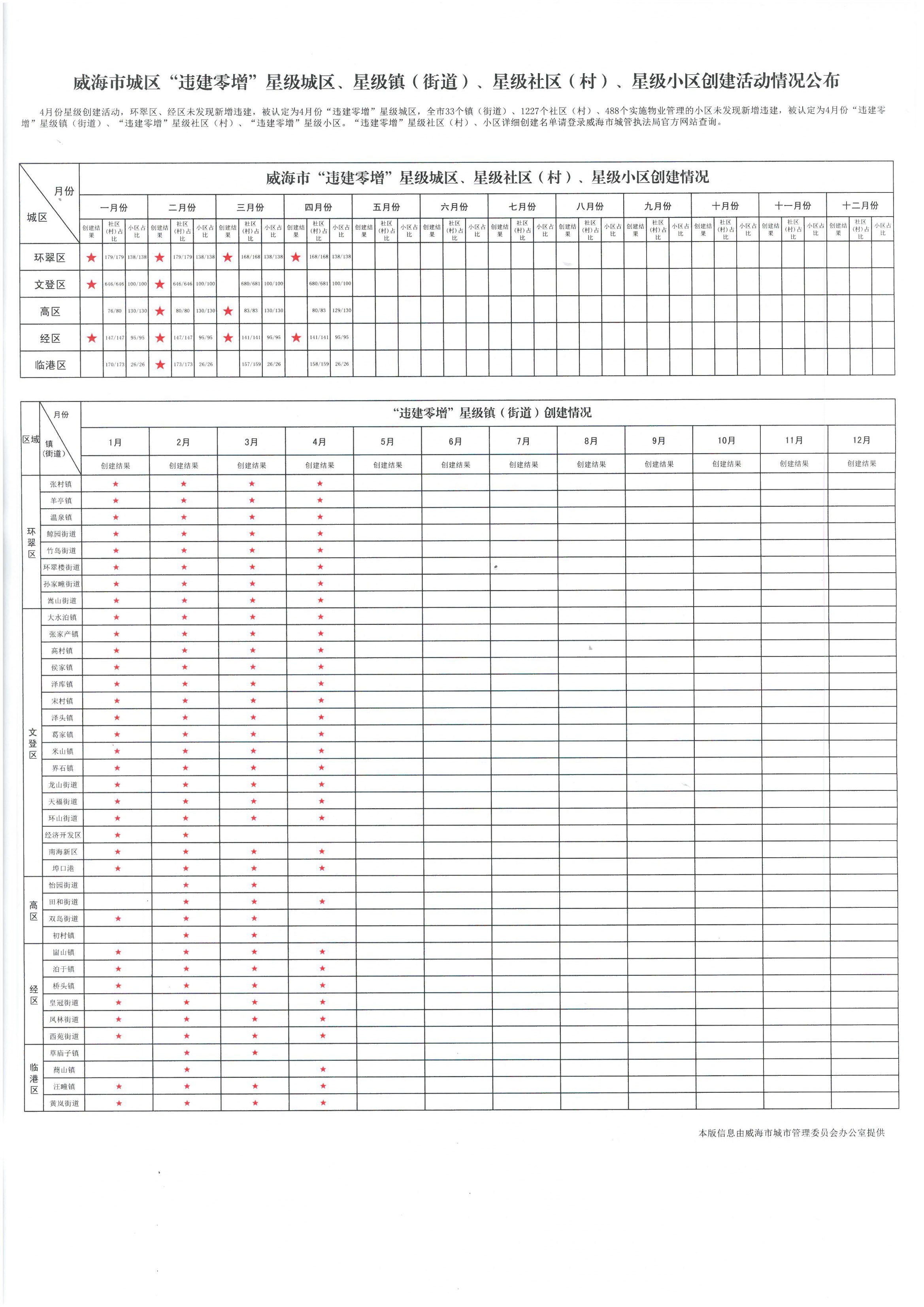 4月份威海市城区“违建零增”星级创建活动情况公布